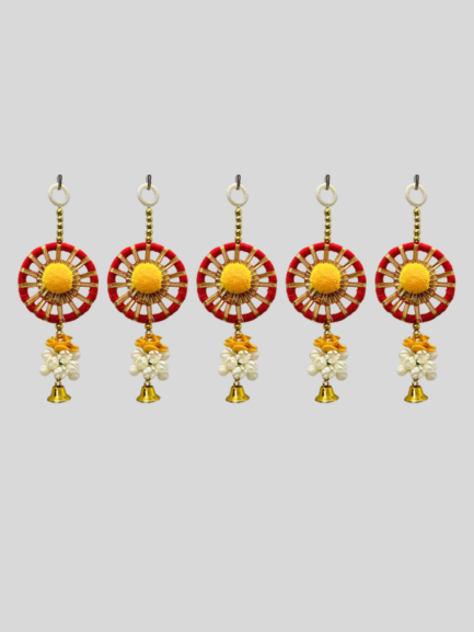 Set of 4 Handmade Multicolor Ring Wall Hanging with Beads & Bell