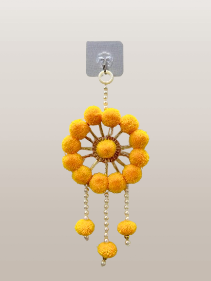 Bring charm and elegance to your home with TheShrotHomes Decorative Pom-Pom Hanging. Designed with vibrant yellow pom-poms arranged in a floral ring style and adorned with pearl-bead hangings, this piece is perfect for adding a festive touch to your living space. Ideal for Diwali, weddings, pooja decorations, and gifting, this lightweight hanging is crafted to brighten up any corner of your home