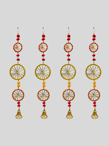 Set of 4 Handmade Multicolor Ring Wall Hanging with Beads & Bell